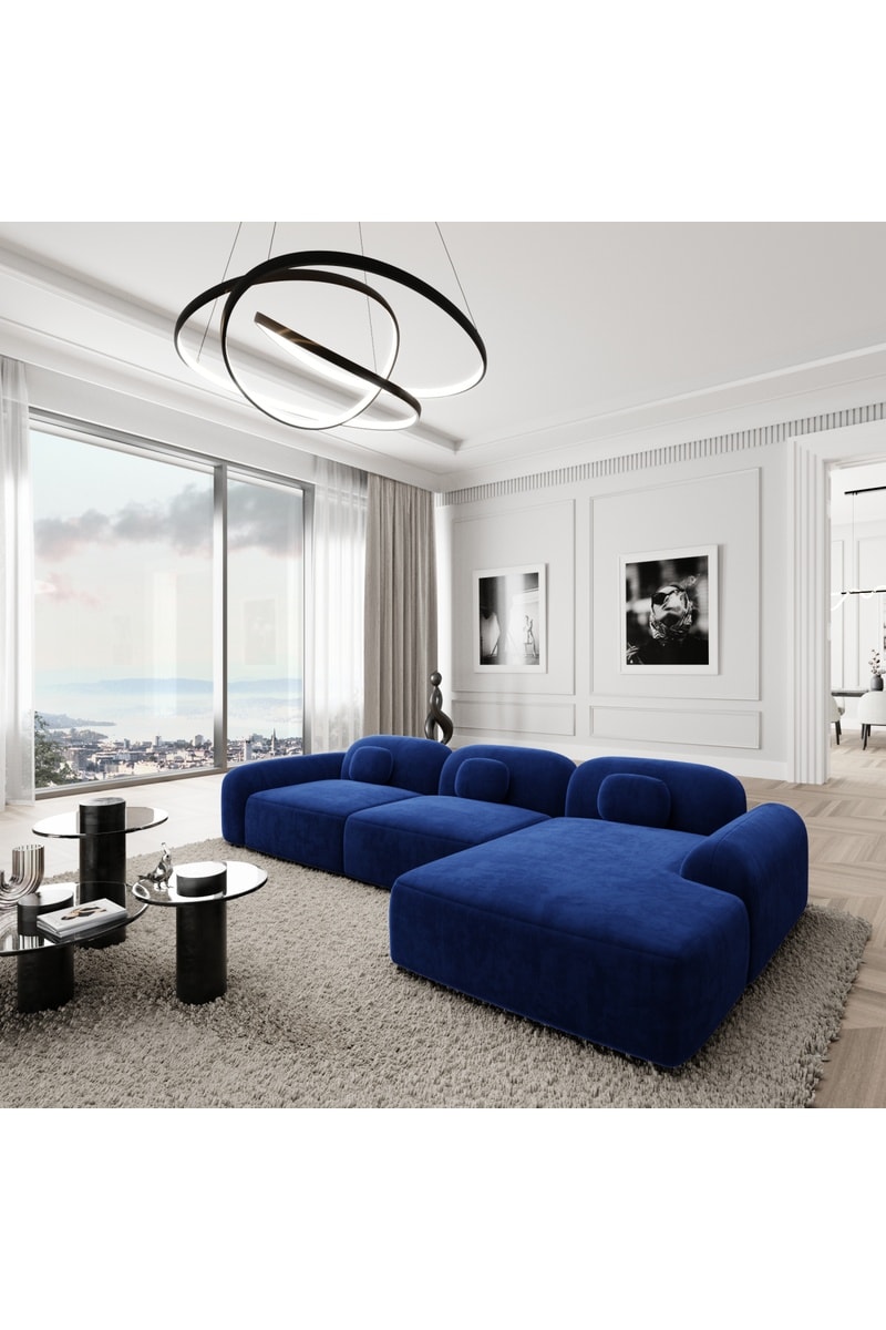 Canapé d'angle droit Labucca - Bleu cobalt - 5 places - En tissu velours
