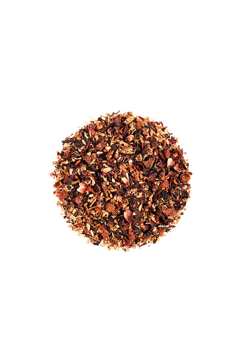Vous trouverez dans ce délicieux mélange une bonne base acidulée d’hibiscus, de délicates graines de grenade, du cassis et de douces baies de goji.