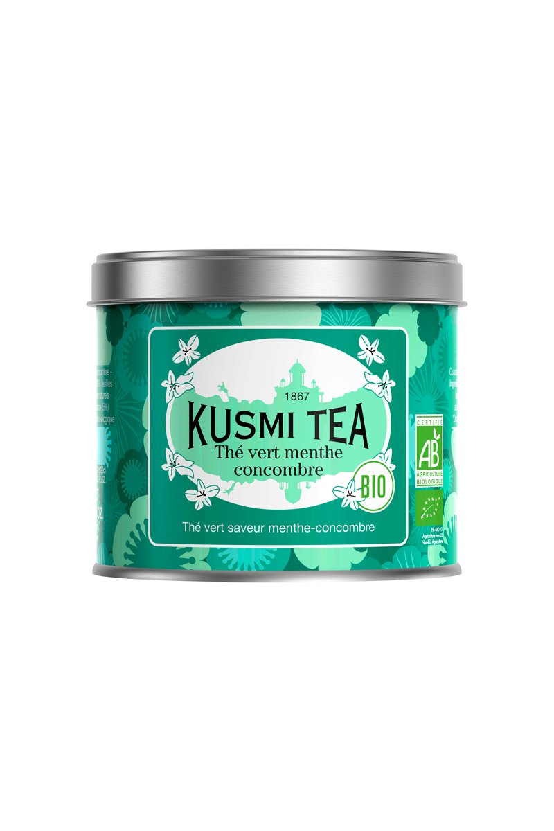 Thé vert menthe-concombre bio en boîte.
