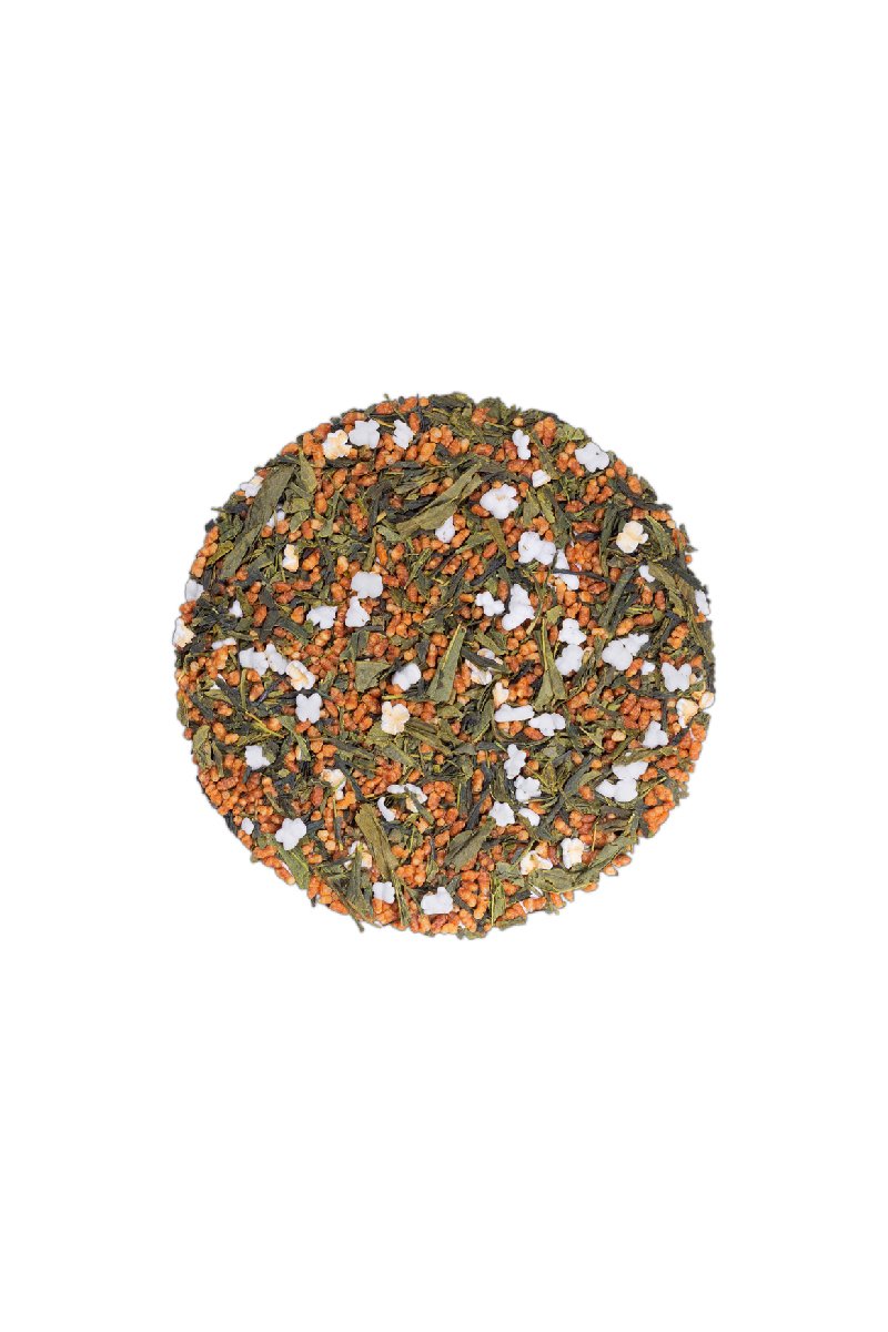 Le thé Genmaicha bio, un mélange original de thé vert du Japon avec des grains de riz grillés et soufflés.