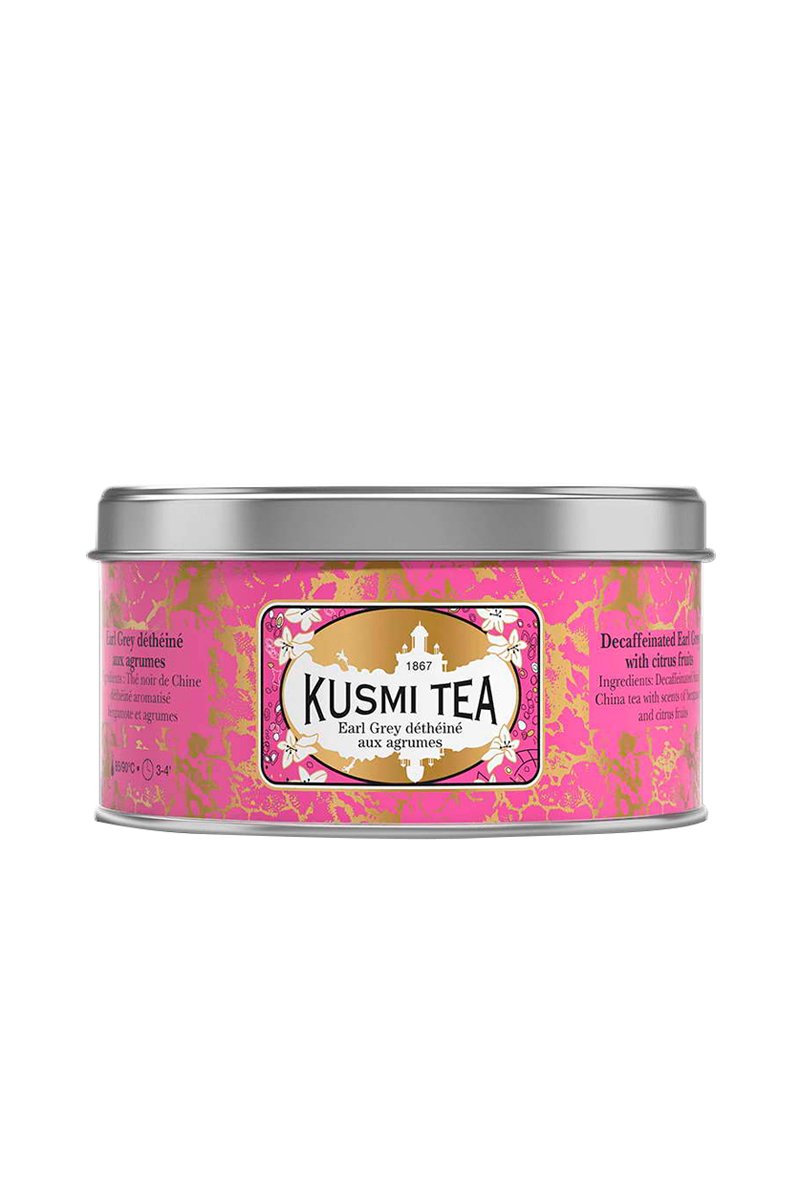 Thé Earl Grey déthéiné aux agrumes en boîte.