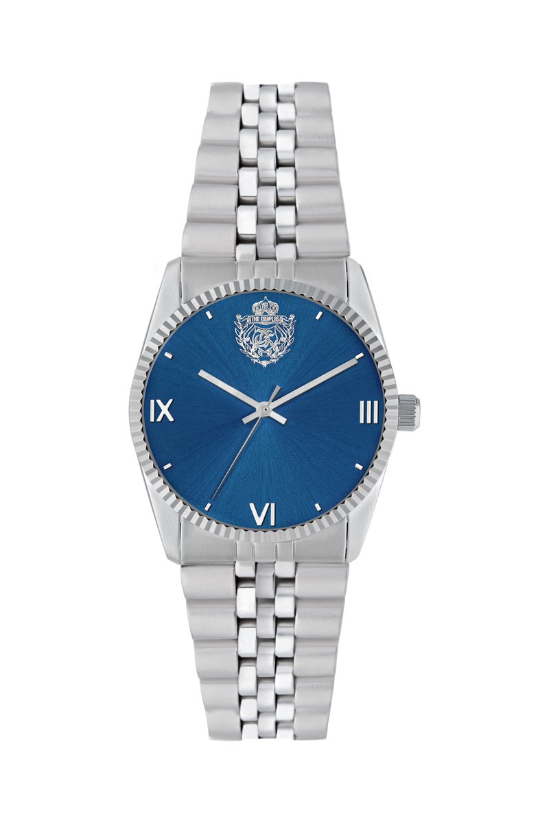 Montre à quartz en acier - Argenté et bleu marine