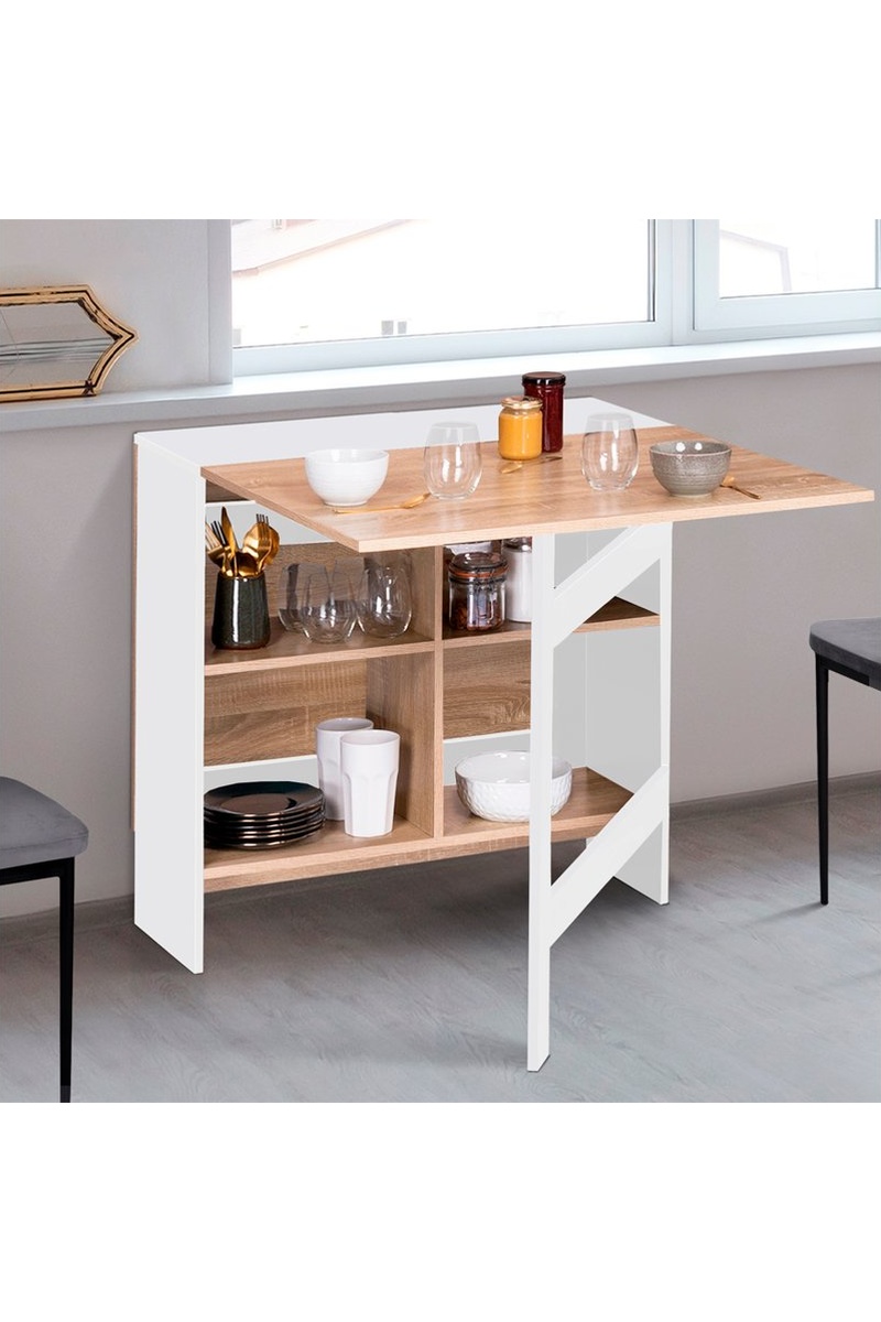 Table console pliable Edi - Imitation bois et blanc