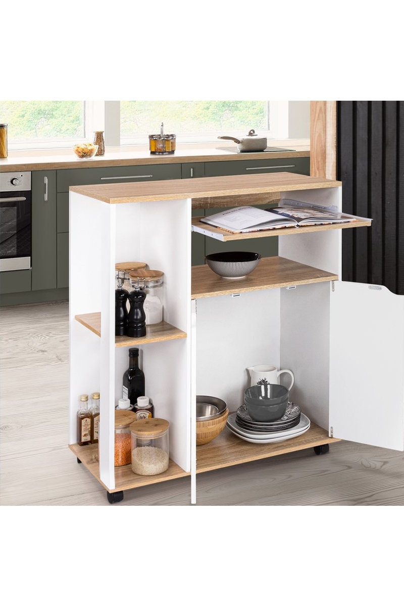 Desserte de cuisine sur roulettes - Blanc et imitation bois