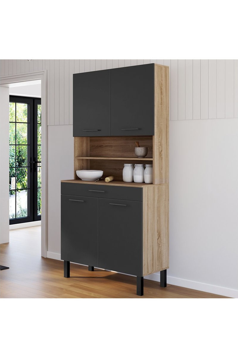 Meuble de cuisine Divino - Noir et imitation bois