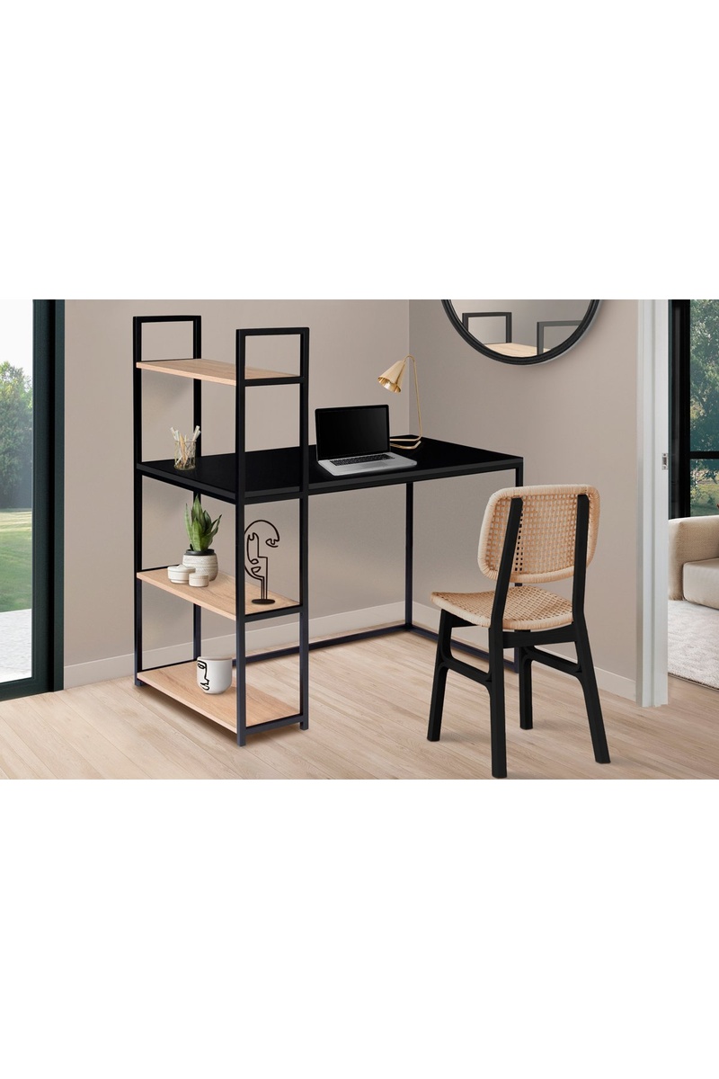 Bureau bibliothèque Manhattan - Noir et imitation bois