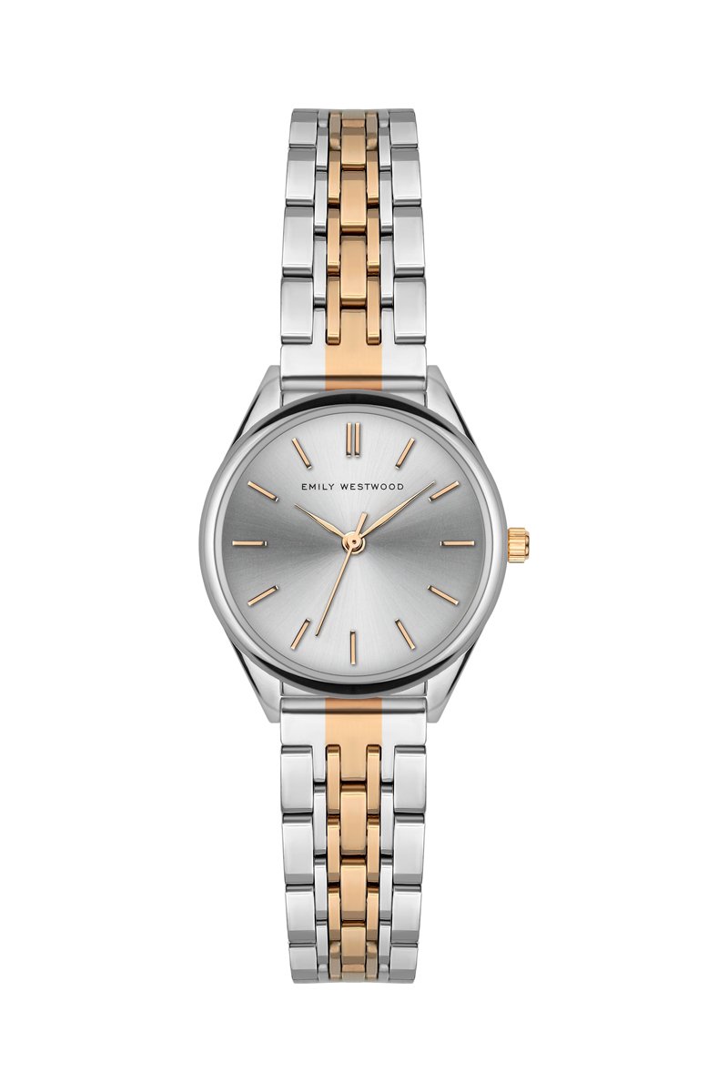 Montre à quartz en acier inoxydable - Argenté et doré rose - Emily Westwood