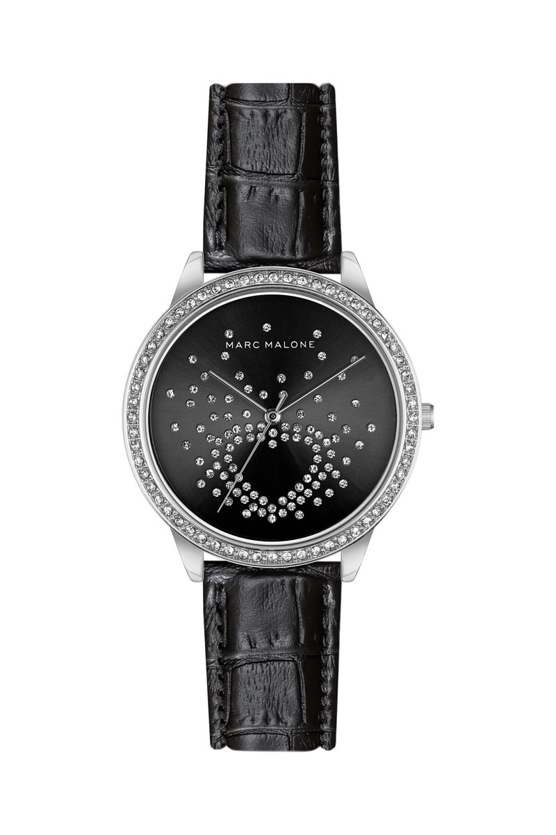 Montre à quartz en cuir et plaqué ion argent Amber - Marc Malone