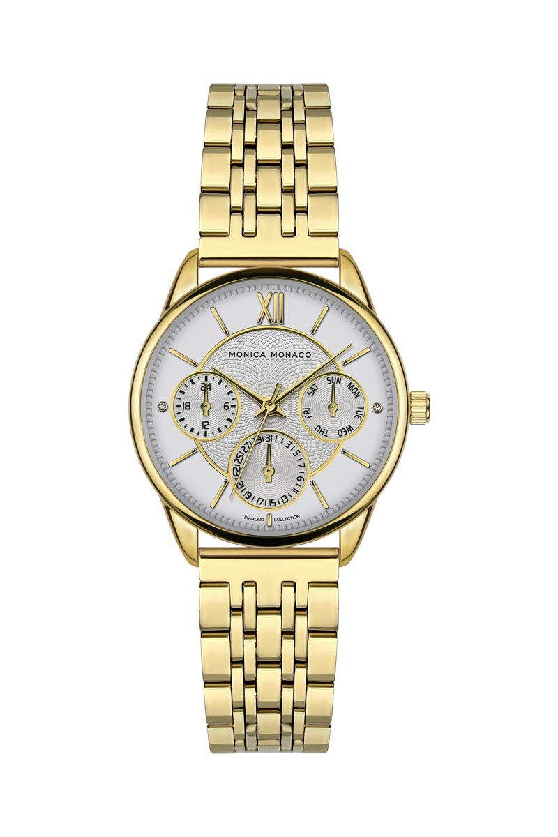 Montre à quartz en acier et diamants - Monica Monaco