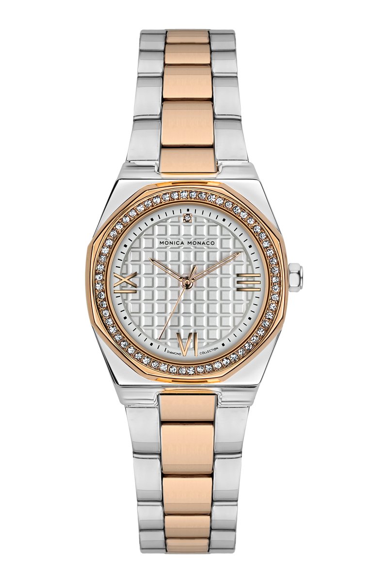 Montre à quartz en acier et diamants