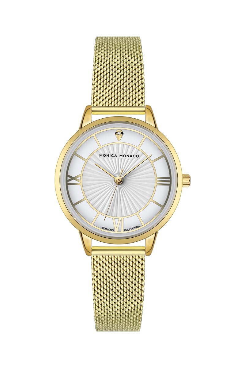 Montre à quartz en acier et diamant - Doré - Monica Monaco