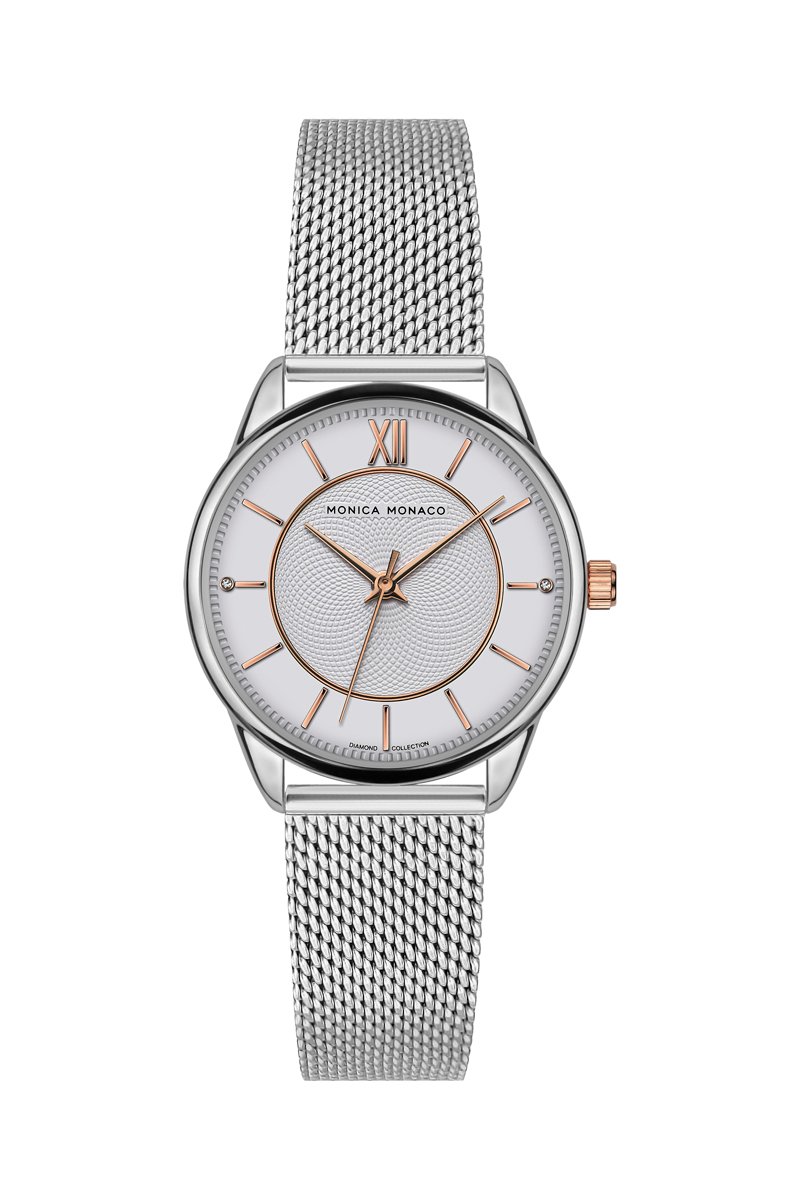 Montre à quartz en acier et diamants - Argenté et blanc - Monica Monaco