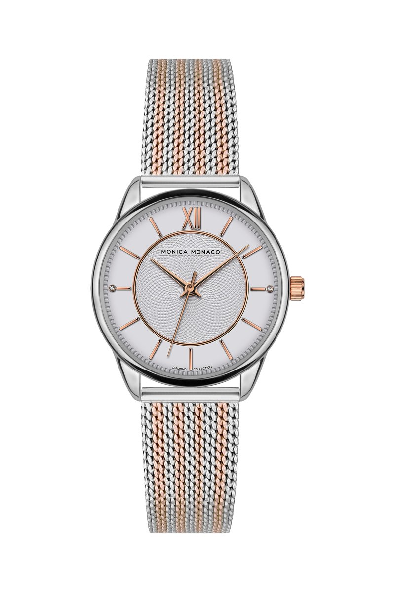 Montre à quartz en acier et diamants - Argenté et doré rose - Monica Monaco