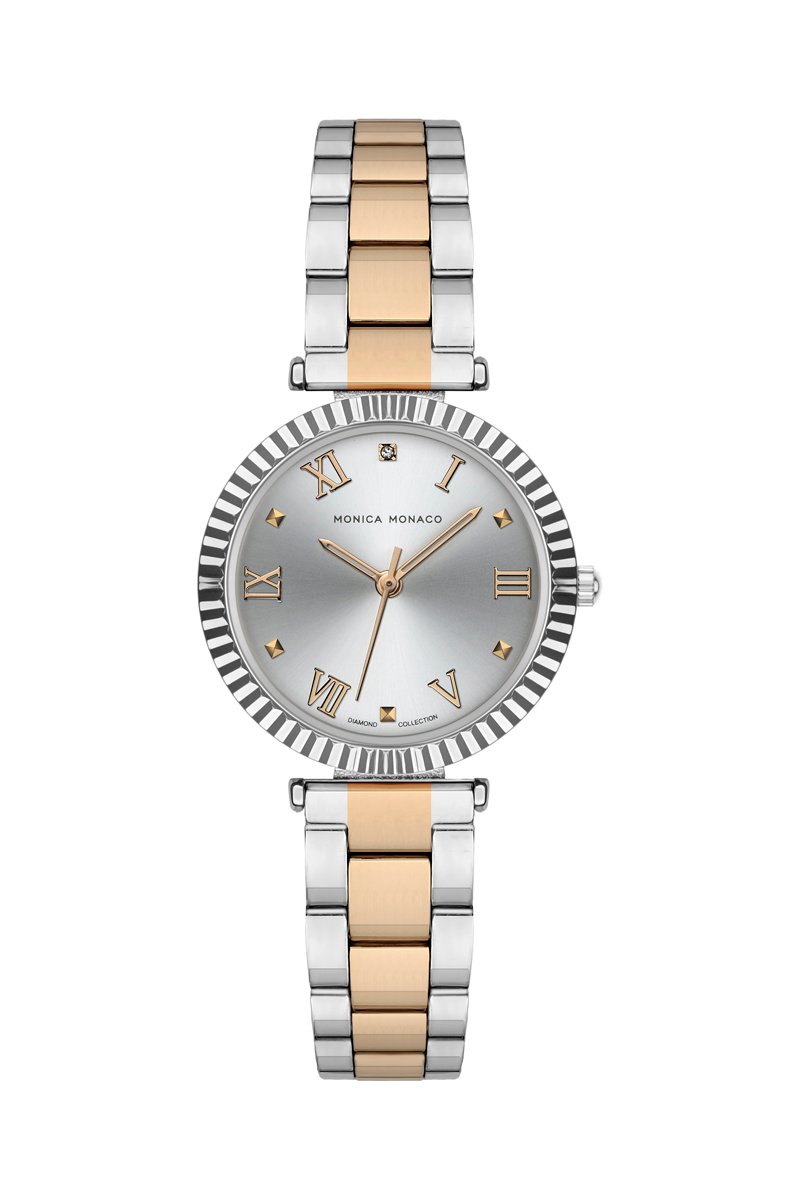 Montre à quartz en acier et diamant - Argenté et doré rose - Monica Monaco