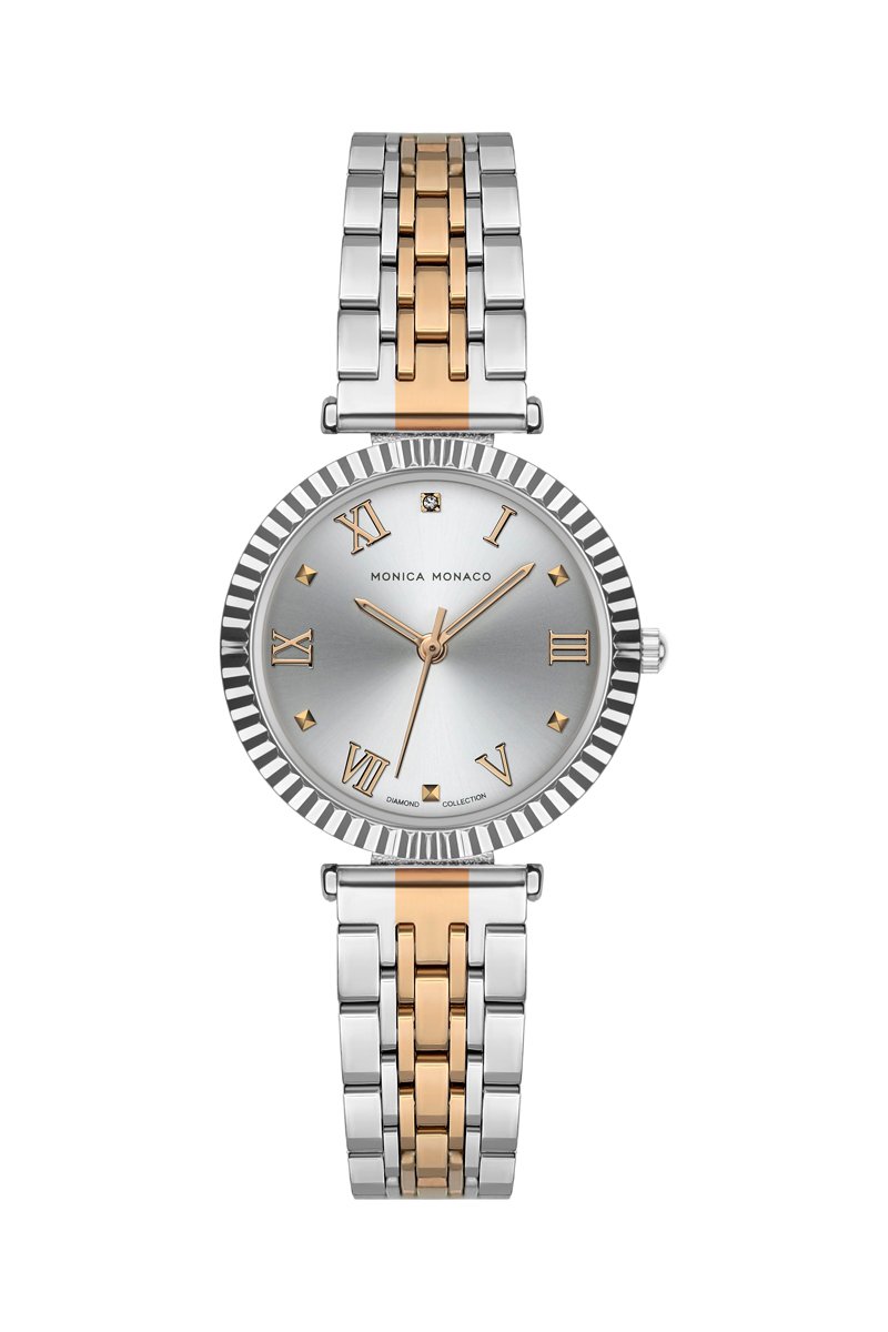 Montre à quartz en acier et diamant - Argenté et doré rose - Monica Monaco