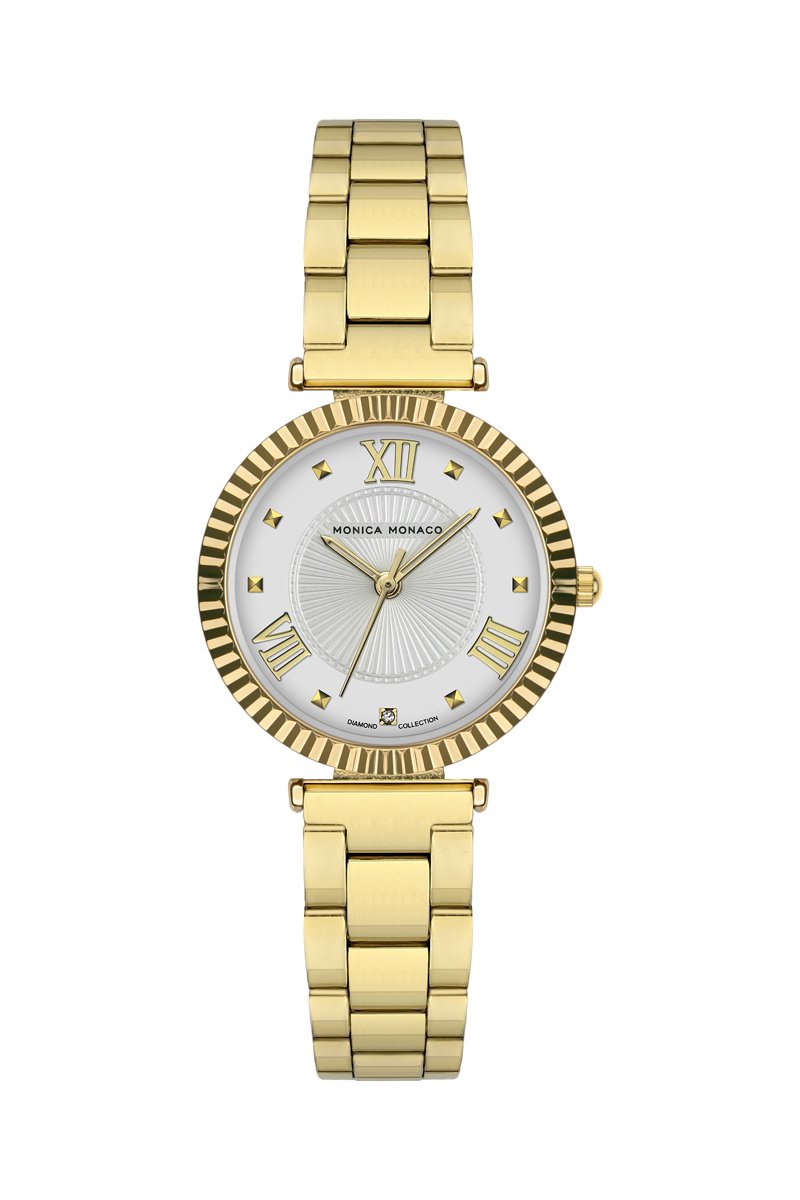 Montre à quartz en acier et diamant - Doré et argenté - Monica Monaco