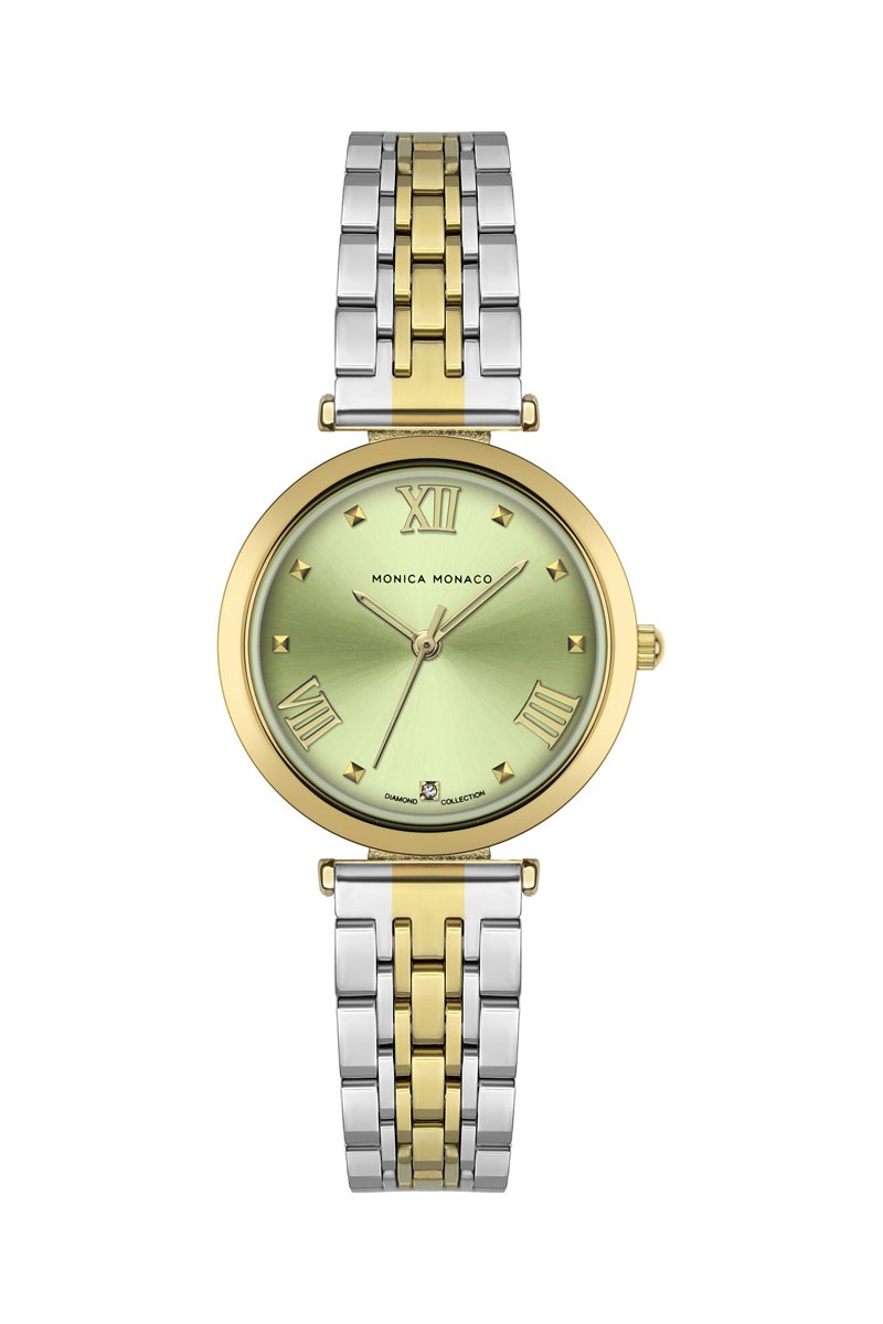 Montre à quartz en acier et diamant - Argenté et doré - Monica Monaco