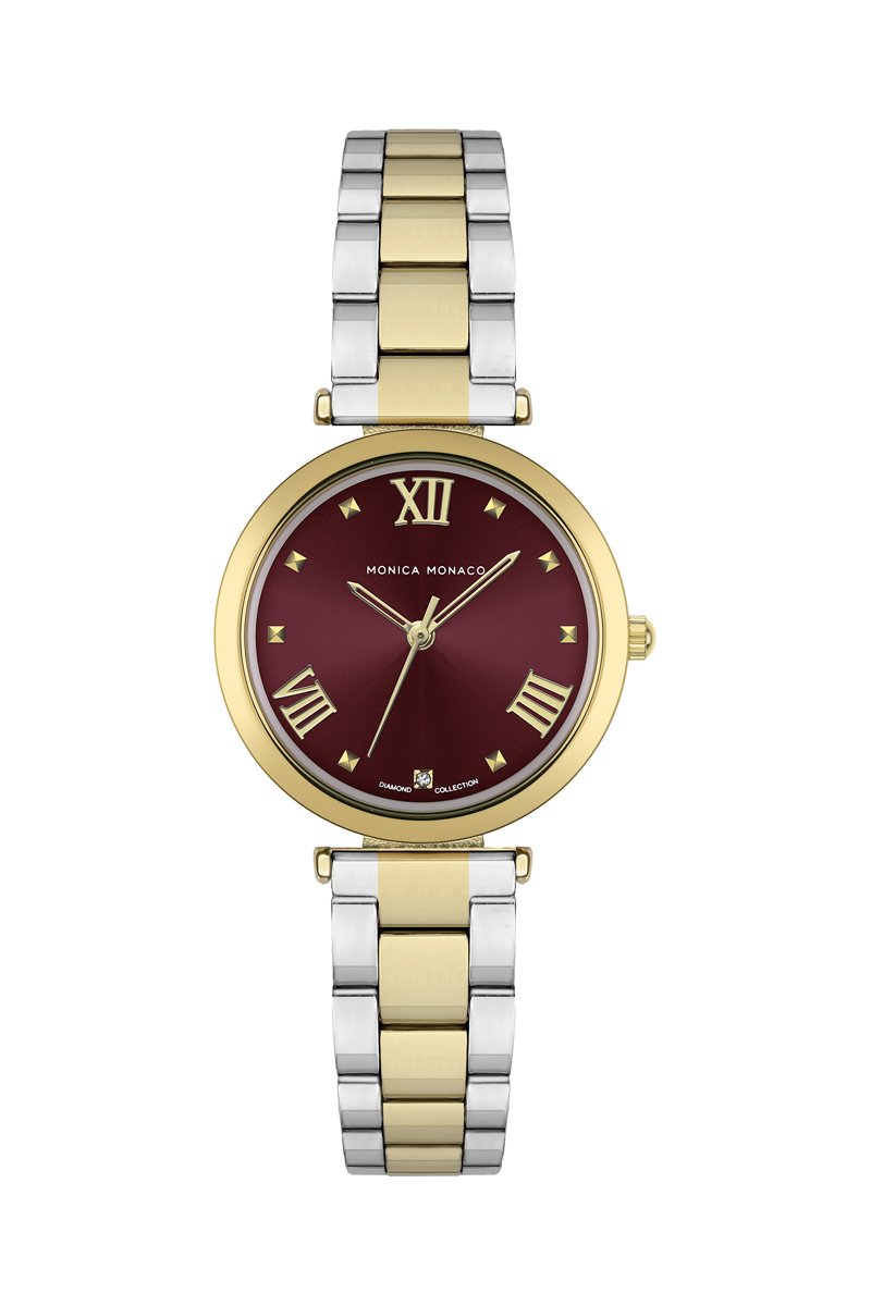 Montre à quartz en acier et diamant - Argenté et doré - Monica Monaco