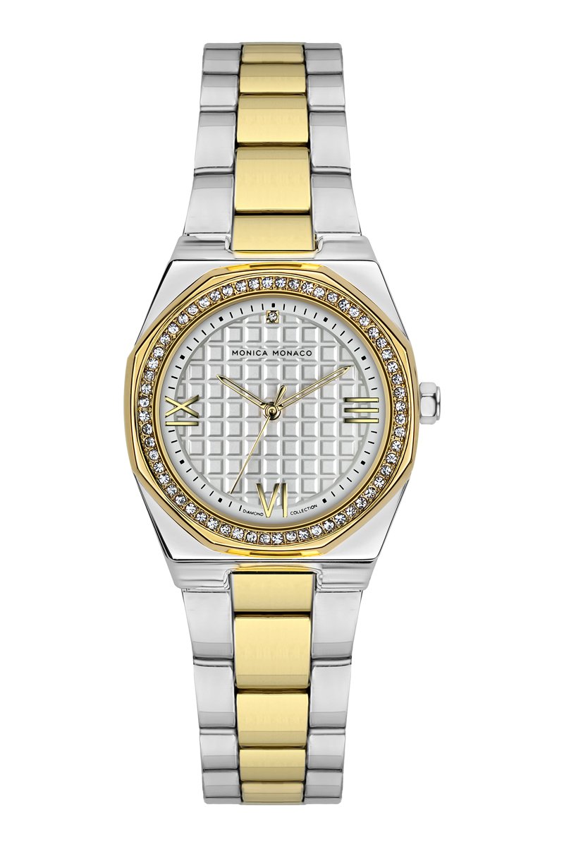 Montre à quartz en acieret diamant - Argenté et doré - Monica Monaco