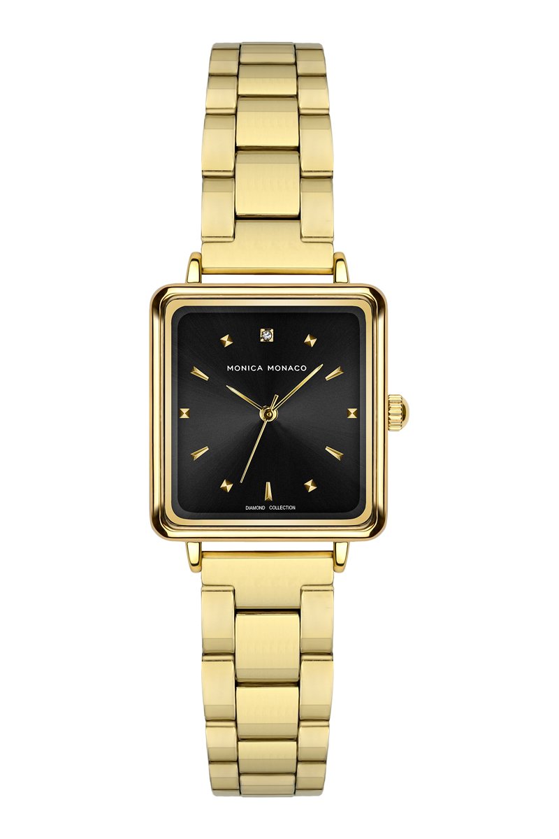 Montre à quartz en acier et diamant - Doré - Monica Monaco