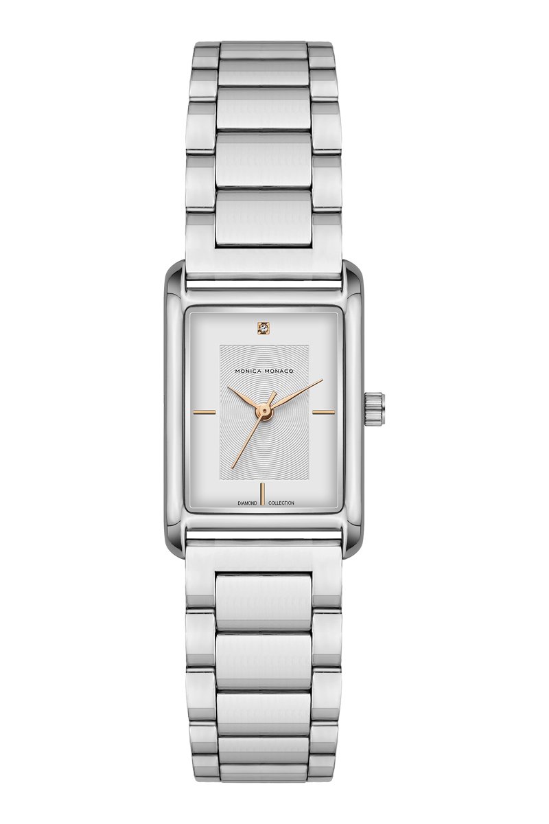 Montre à quartz en acier et diamant - Argenté - Monica Monaco