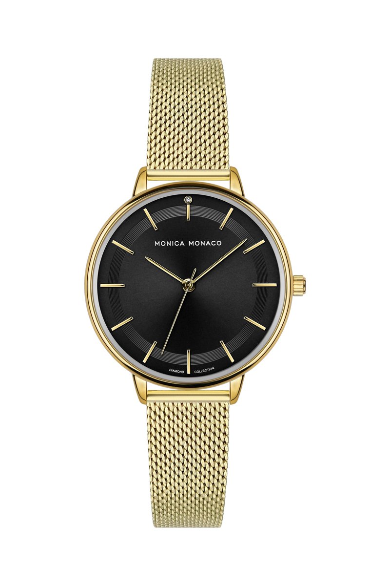 Montre à quartz en acier et diamant - Doré - Monica Monaco