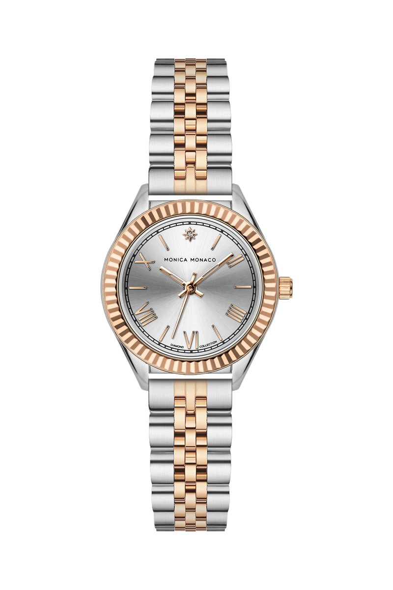 Montre à quartz en acier et diamant - Argenté - Monica Monaco