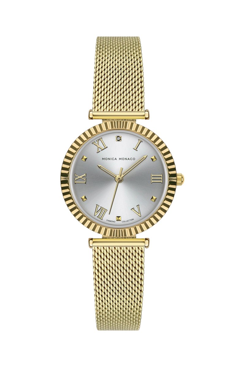 Montre à quartz en acier et diamant - Doré - Monica Monaco