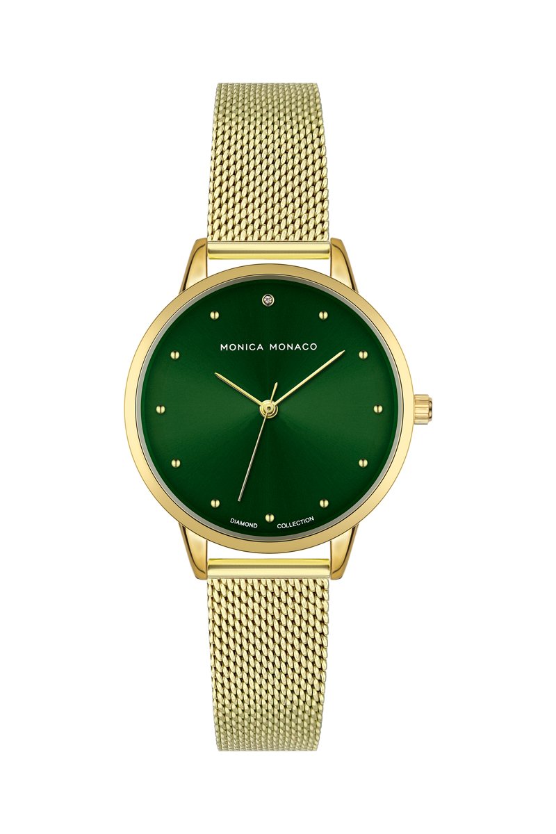 Montre à quartz en acier et diamant - Doré et vert - Monica Monaco