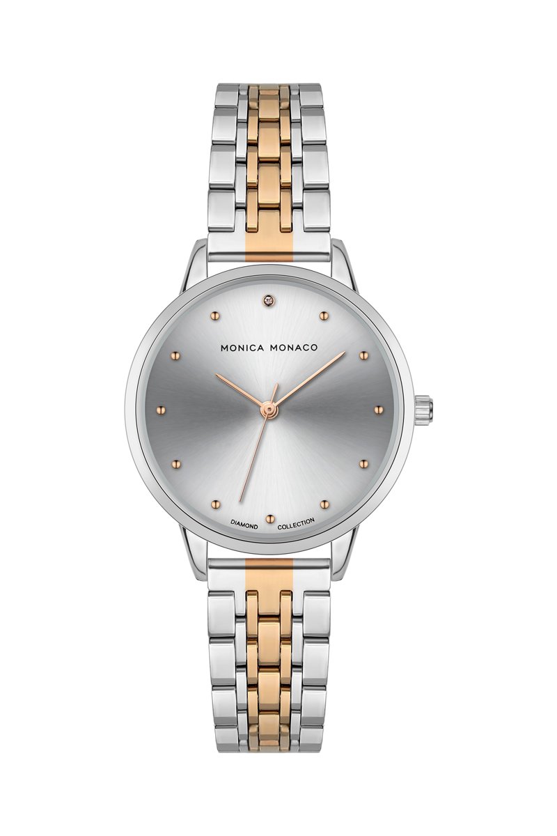 Montre à quartz en acier et diamant - Argenté - Monica Monaco