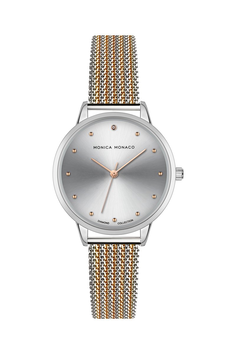 Montre à quartz en acier et diamant - Argenté - Monica Monaco