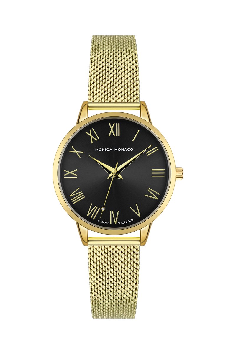 Montre à quartz en acier et diamant - Doré et noir - Monica Monaco