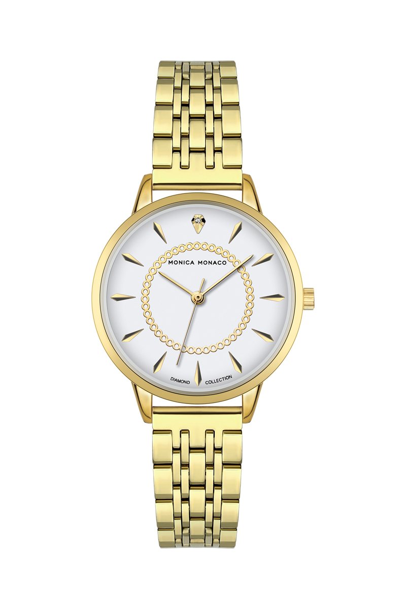 Montre à quartz en acier et diamant - Doré - Monica Monaco