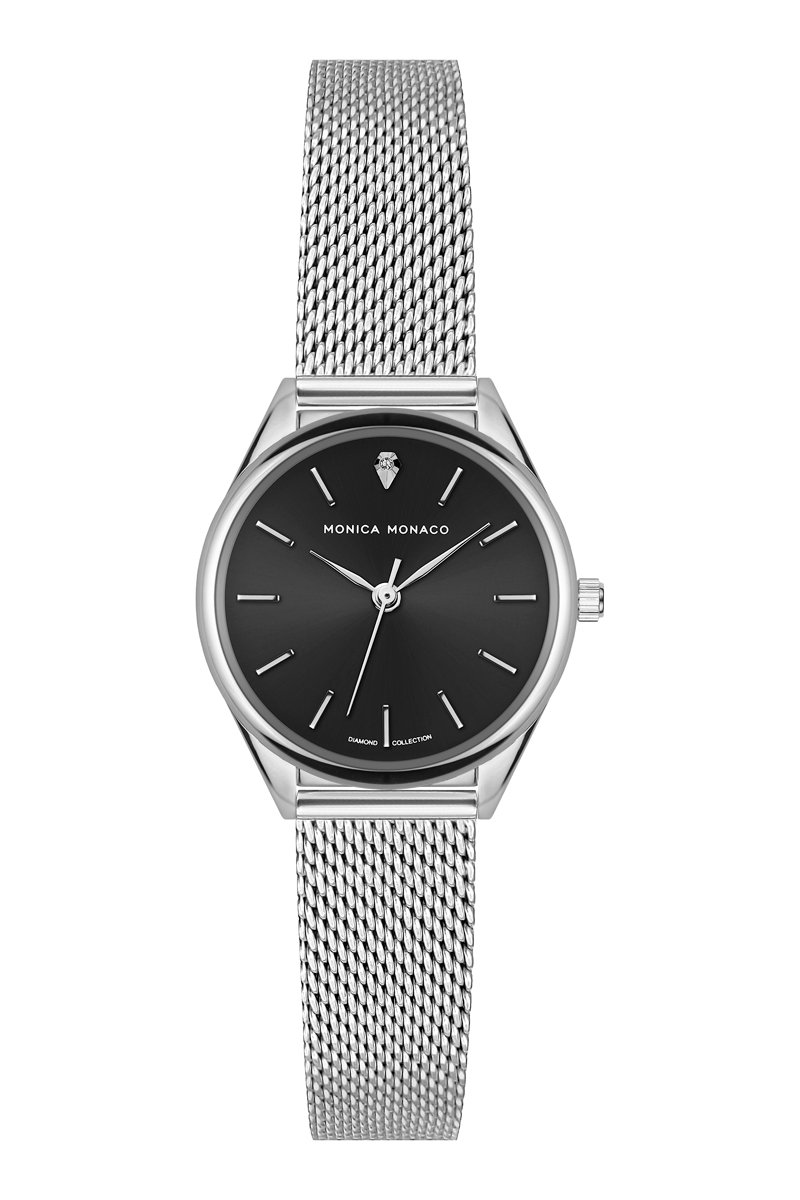 Montre à quartz en acier et diamant - Argenté - Monica Monaco