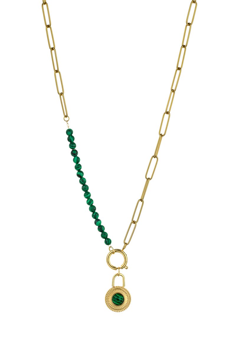Collier orné de perles d'imitation malachite.