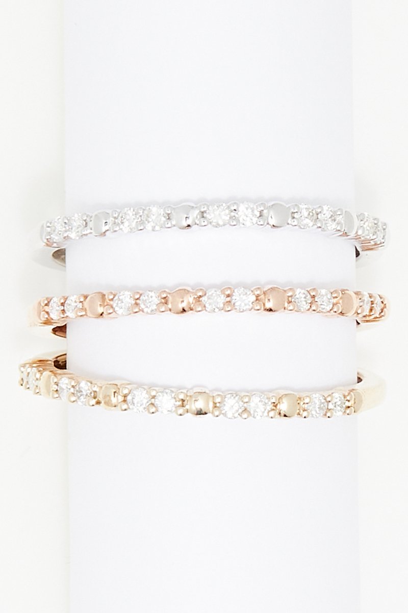 3 bagues en or jaune, blanc et rose serties de 30 diamants.