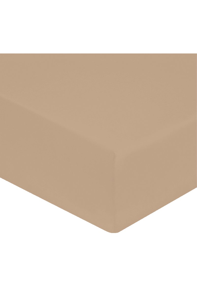 Drap-housse en percale de coton - 80 fils/cm² - Beige - Bonnet 40 cm