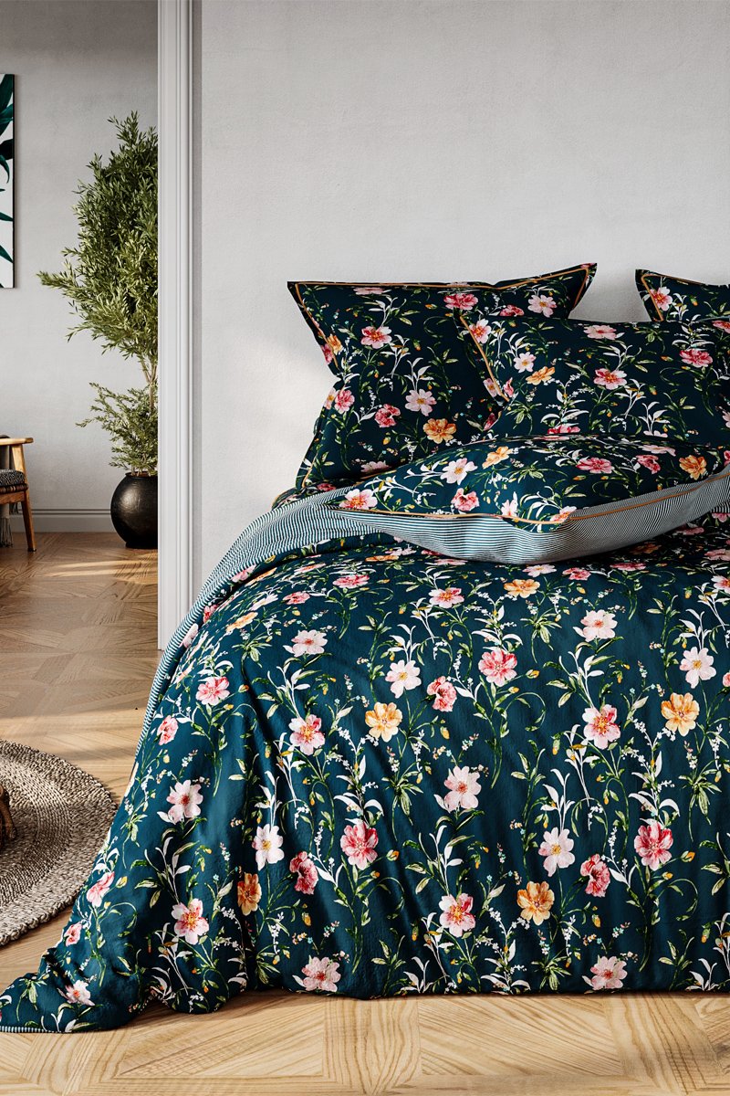 Parure de draps en coton 57 fils/cm² Flore - Vert et rose