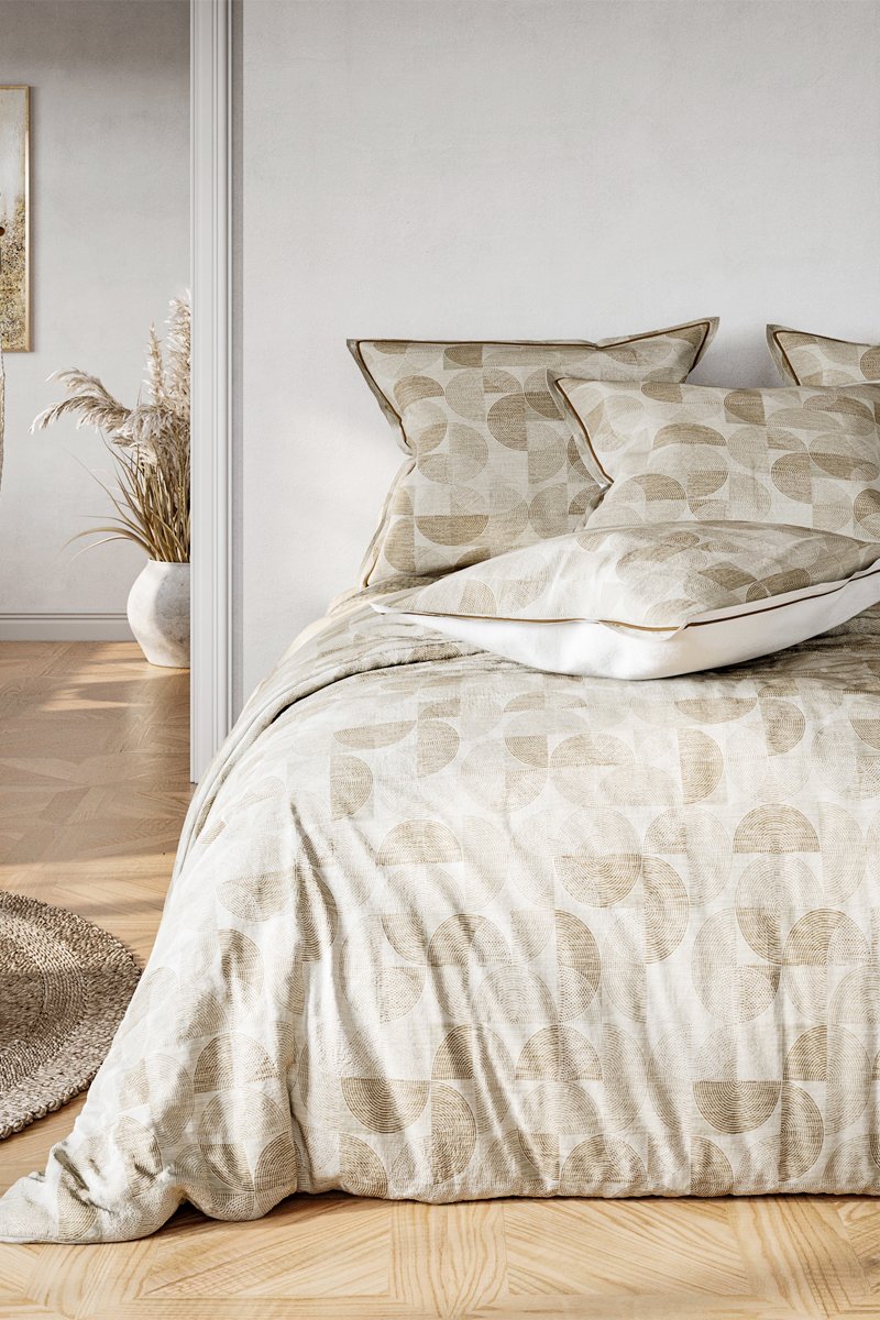 Parure de draps en coton 57 fils/cm² Lara - Beige et blanc