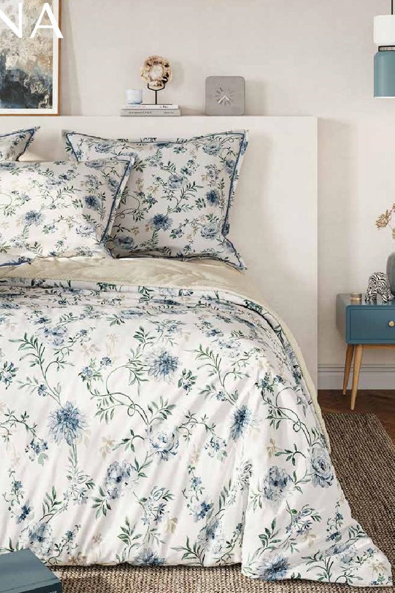 Parure de draps en coton 57 fils/cm² Diana - Blanc et bleu
