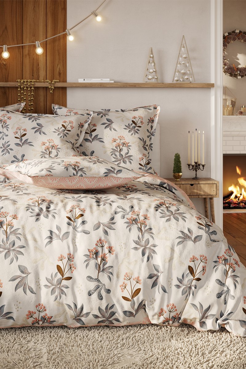 Parure de couette en flanelle de coton Suzie - Gris et rose
