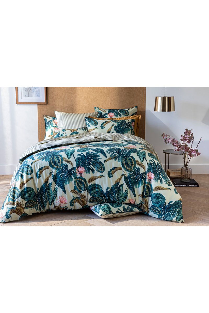 Parure de couette en satin de coton 120 fils/cm² - Ivoire et vert