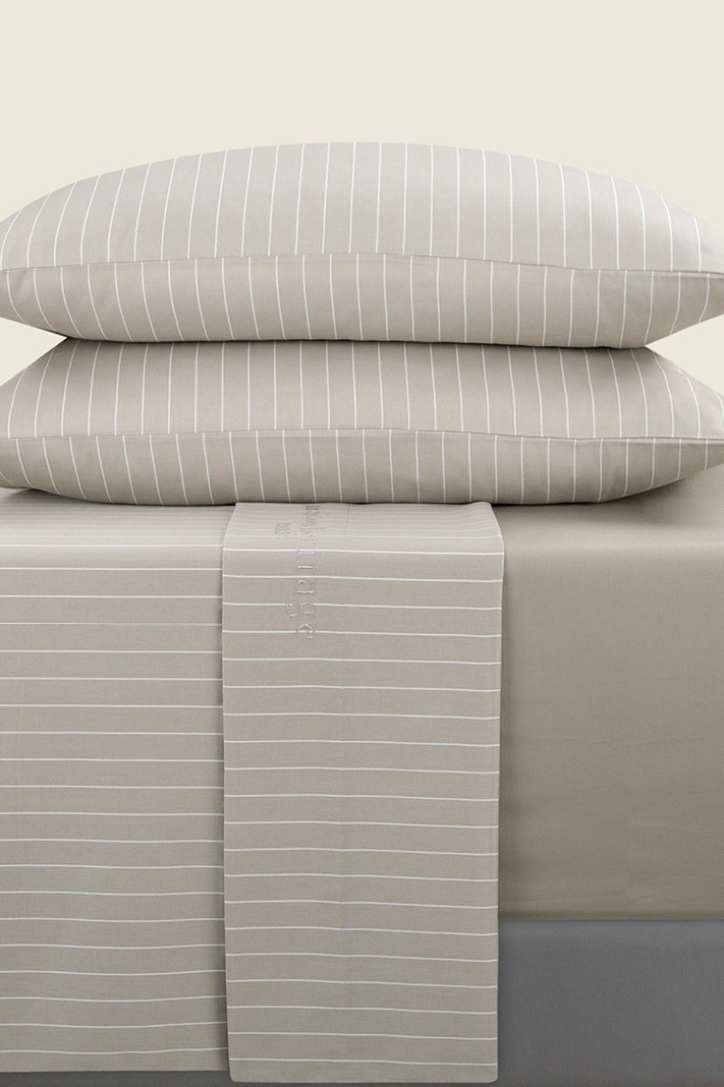 Parure de draps en satin de coton 80 fils/cm² Rayures élégantes - Taupe
