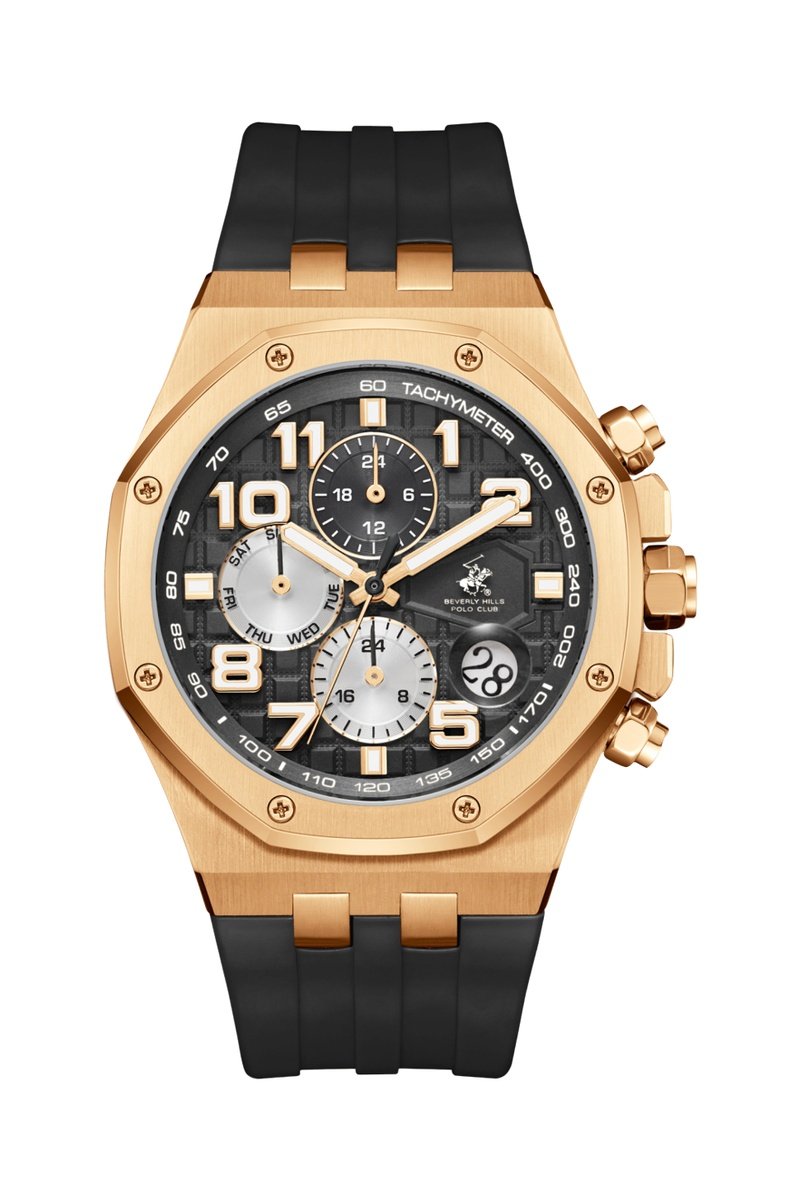 Montre à quartz en silicone et dorée à l'or rose - Tachymètre et chronographe