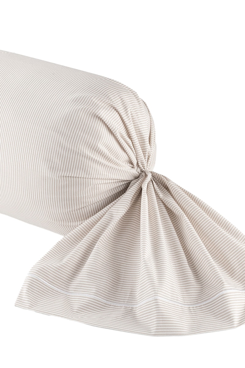 Taie de traversin en percale de coton 80 fils/cm² Dauphine - Taupe et blanc
