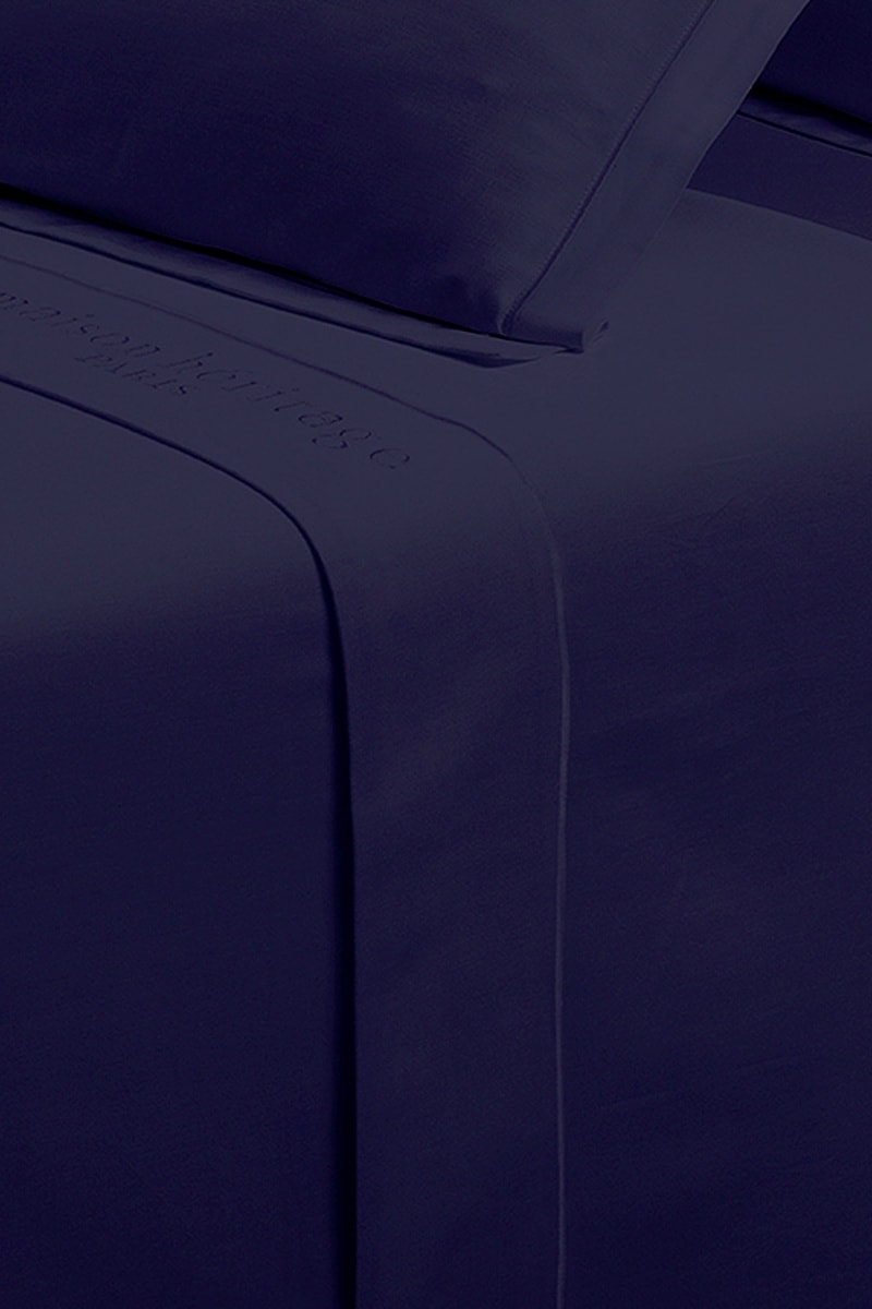 Drap plat en satin de coton 80 fils/cm² Uni - Bleu foncé