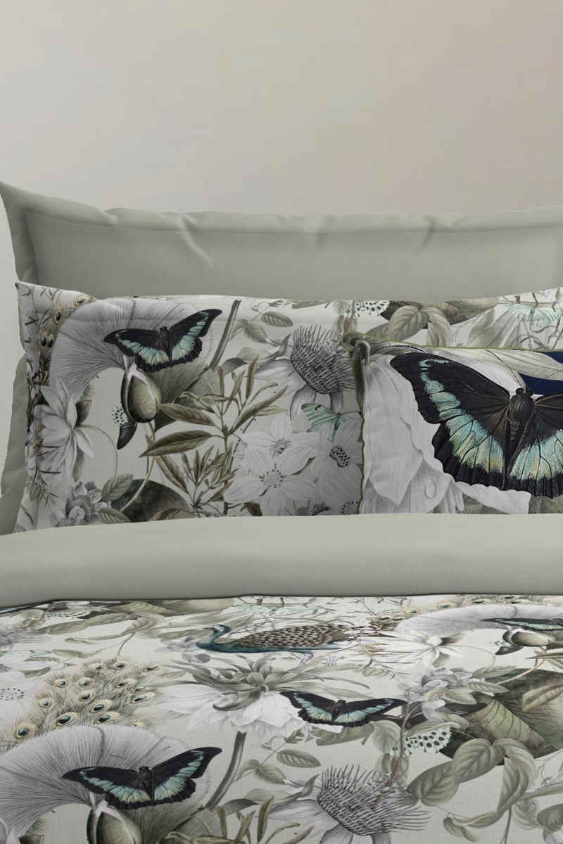 Drap plat en satin de coton 80 fils/cm² Jardin orné - Vert clair