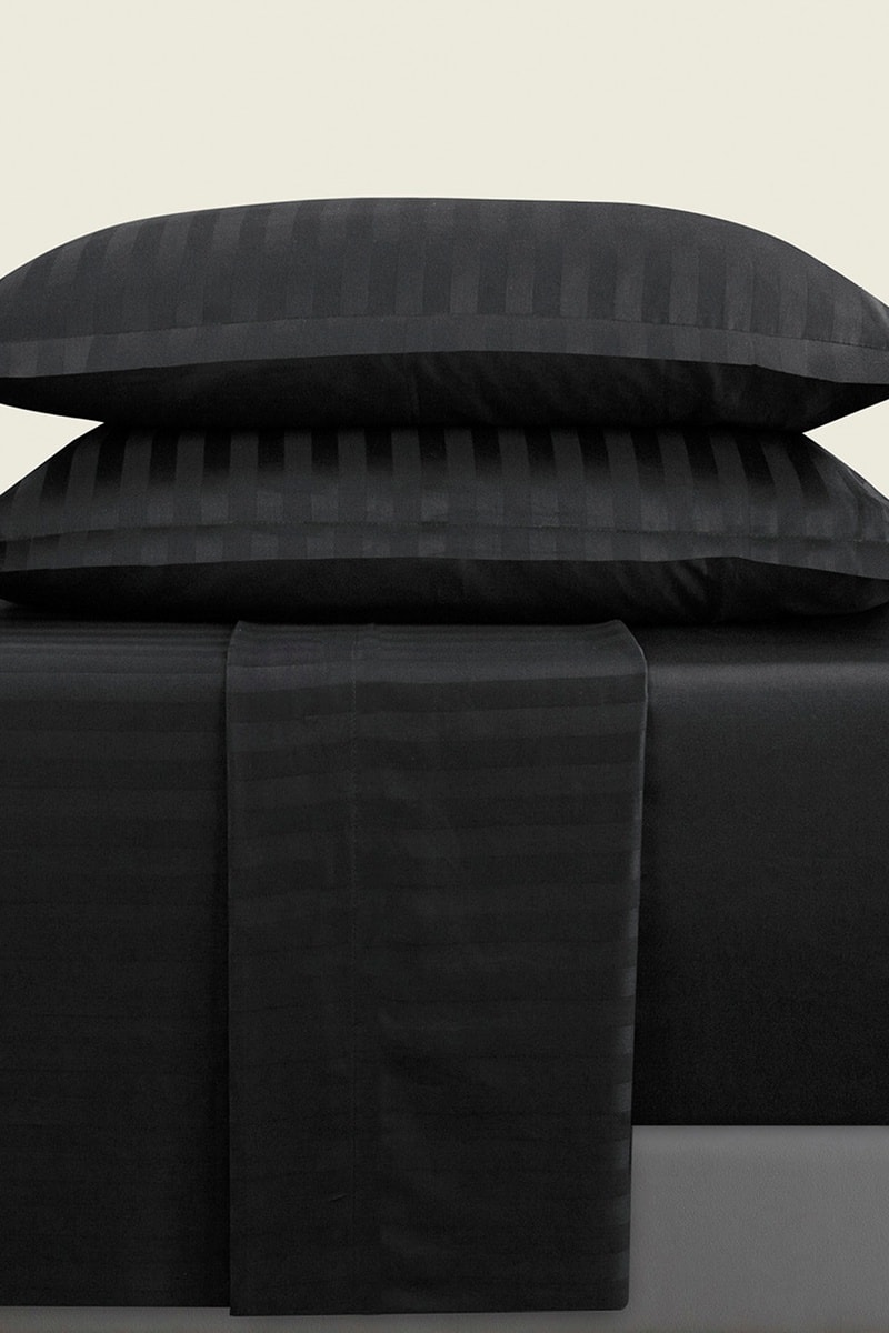 Parure de draps en satin de coton 80 fils/cm² Dobby - Noir