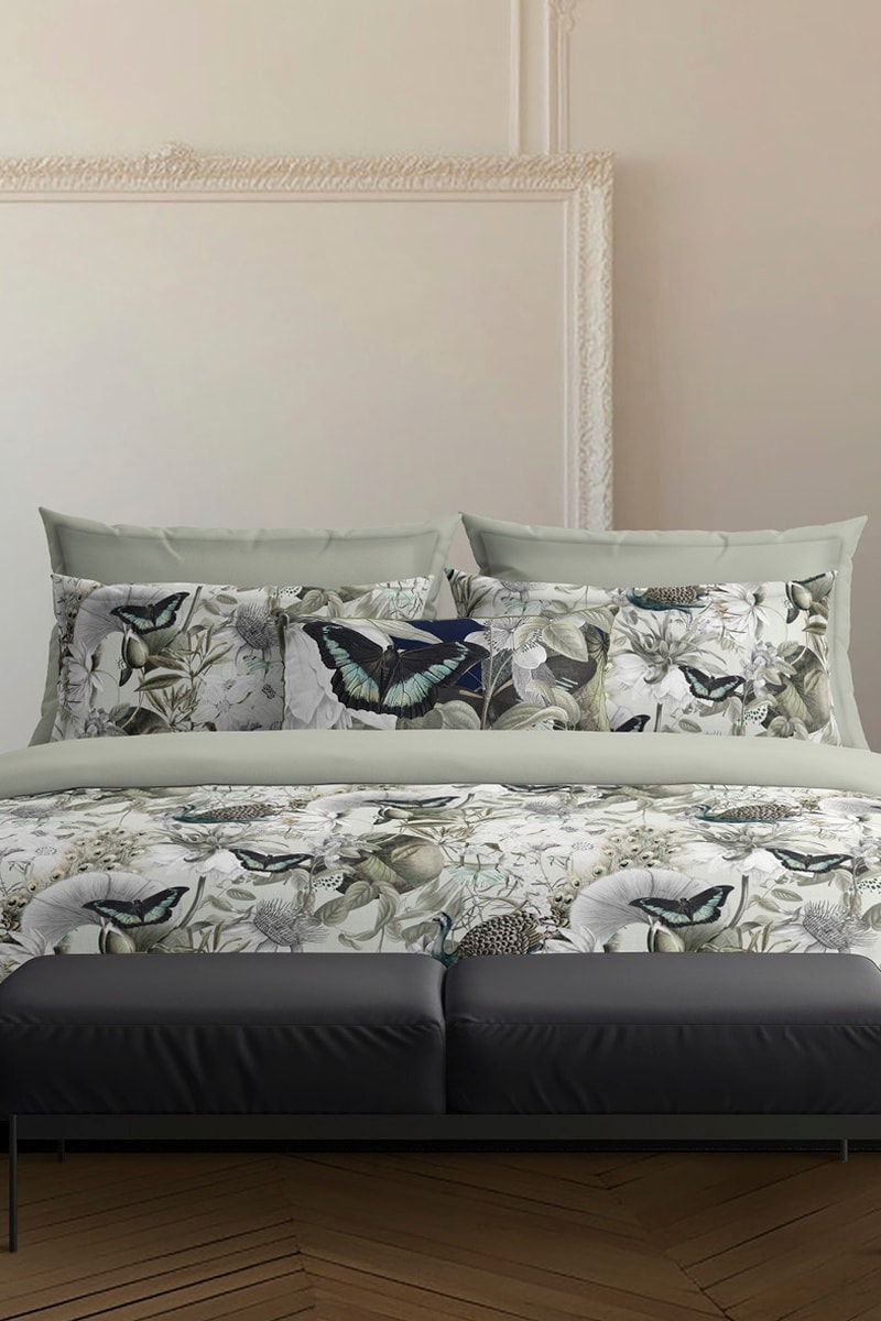 Parure de couette en satin de coton 80 fils/cm² Jardin orné - Vert clair et blanc