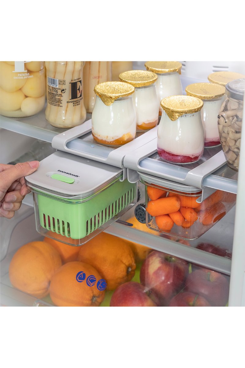 Support avec guide pour pouvoir l’accrocher facilement dans le réfrigérateur.
